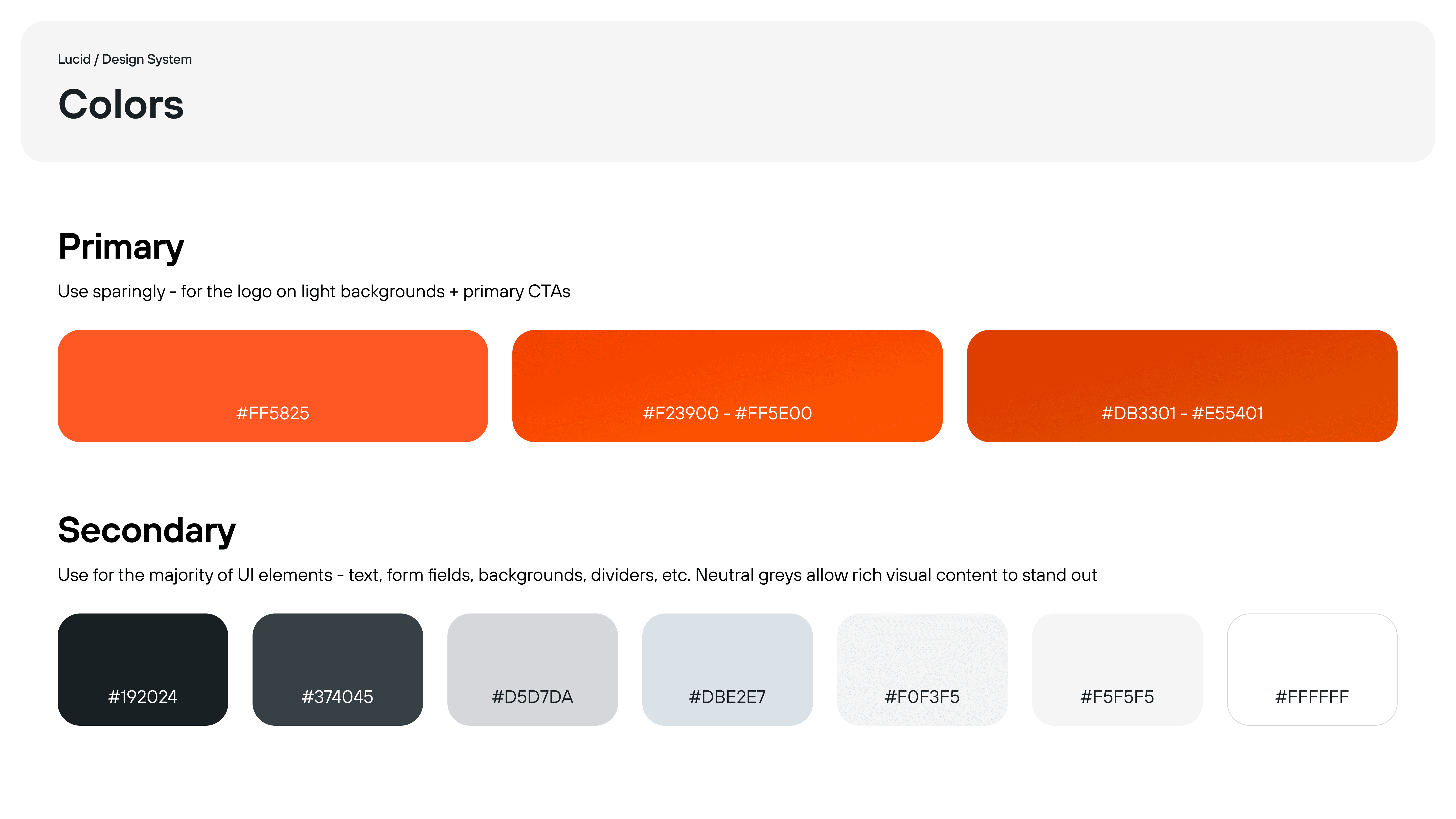 I designed the logo + visual identity for Lucid and collaborated with teammates to develop Lucid's design system, including typographic styles, reusable components and standardized patterns to ensure consistency and scalability.