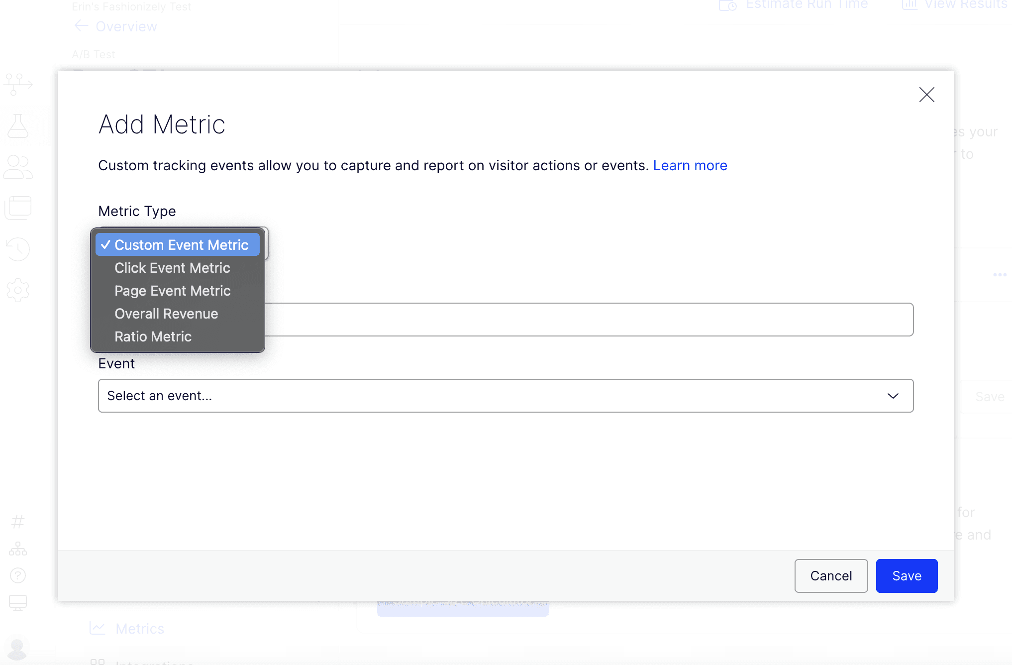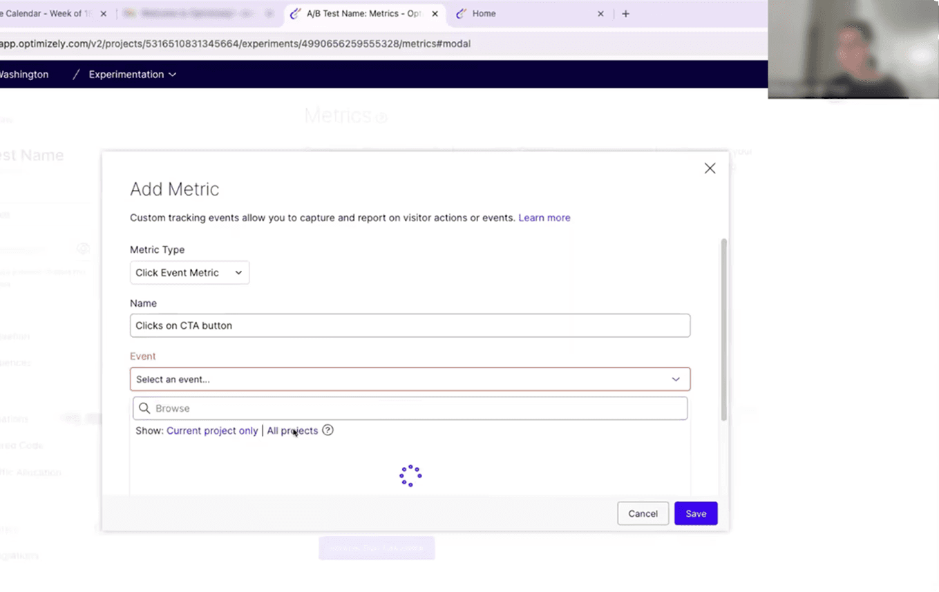 Adding a metric + corresponding event to an experiment on the WebEx platform