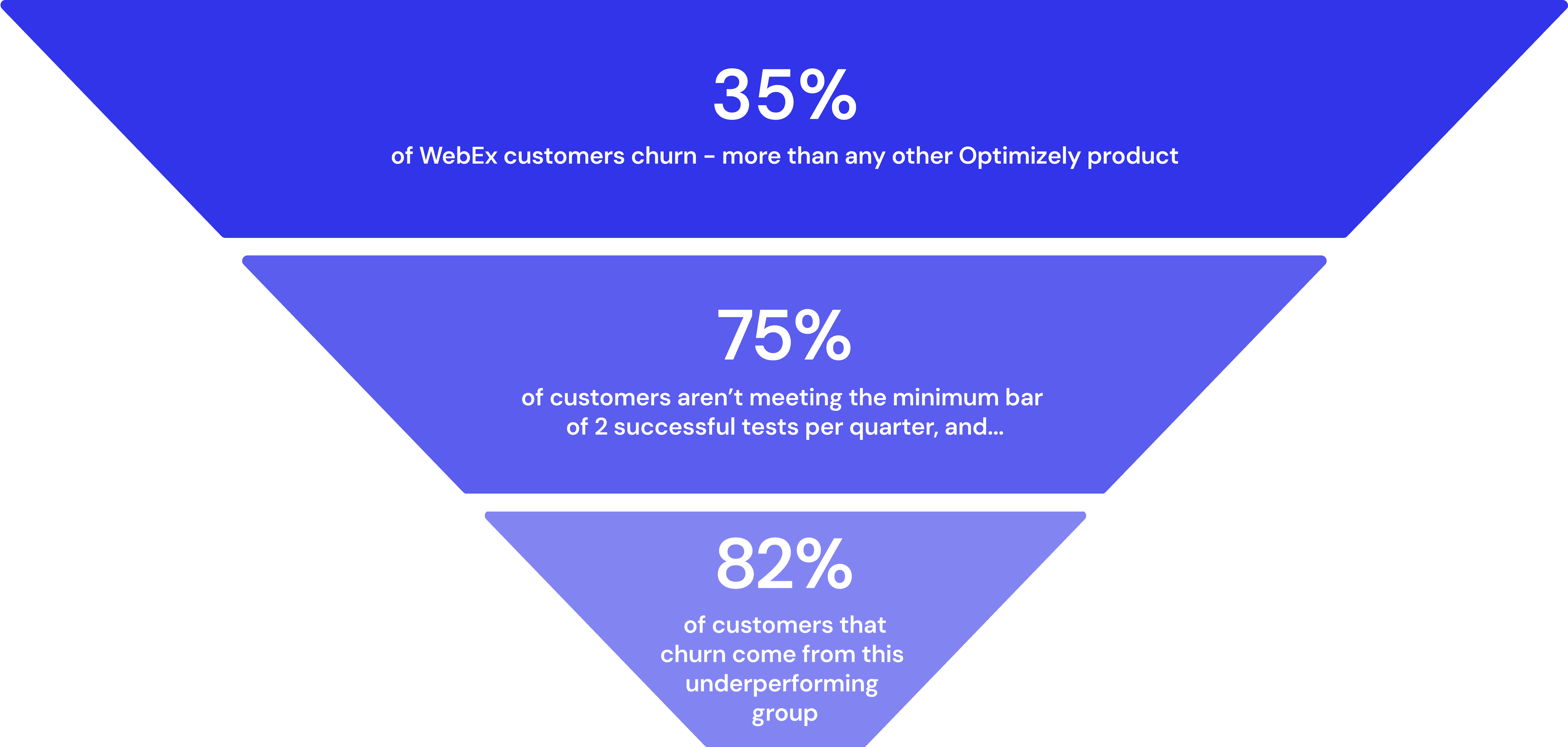 Our big takeaway: WebEx is a technical product, and while Optimizely offers personalized onboarding support for new customers at an added cost, many choose not to pay for this and there isn’t enough staff available for every customer to get dedicated support even if they wanted to. “Self-serve” customers who don’t pay for dedicated onboarding support with specialists struggle to get started with the platform and churn when it’s time to renew their contract.