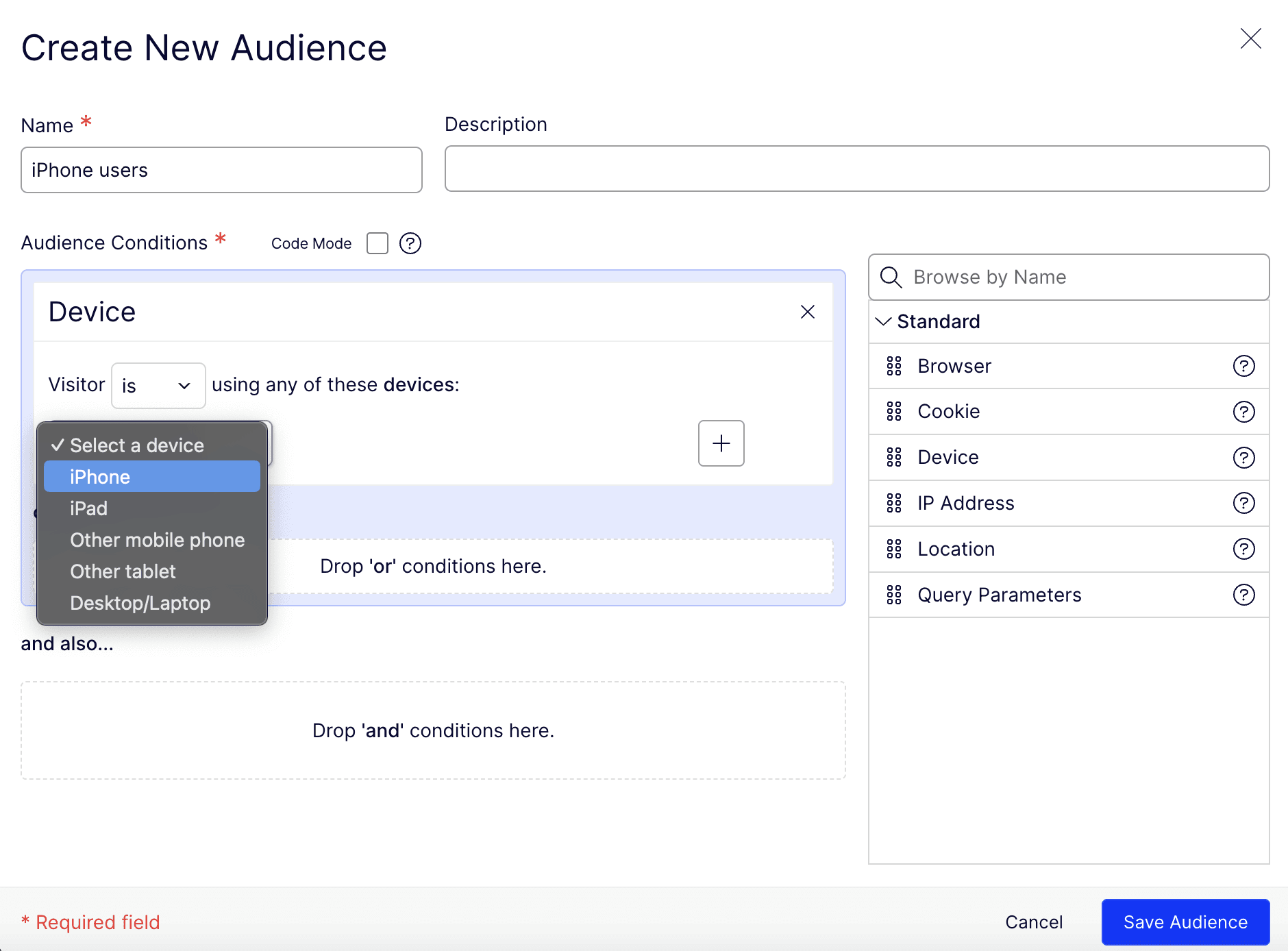 Identifying a subset of site visitors to show the experiment to and setting that audience up using the platform