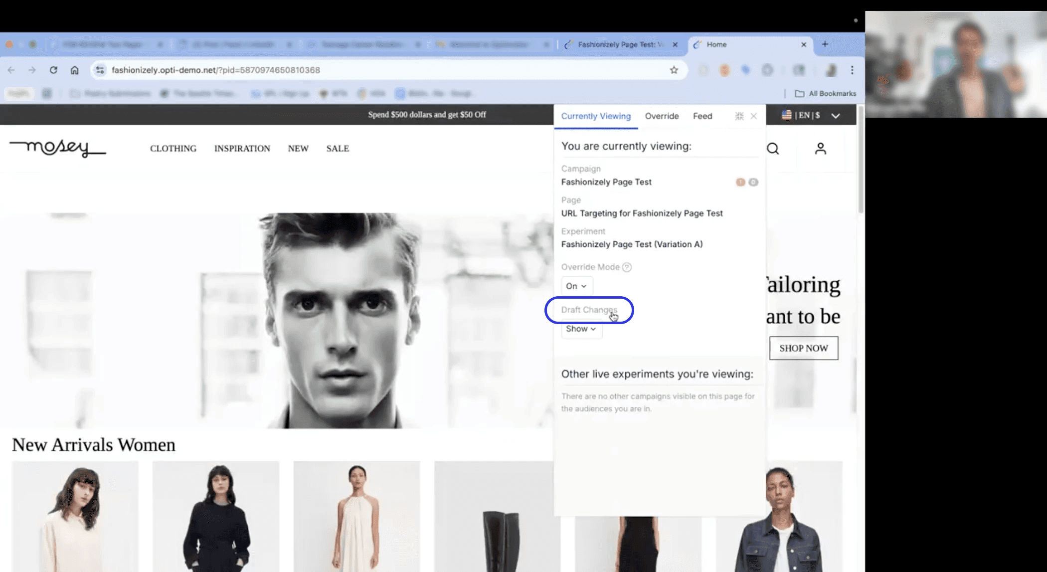 P4, attempting to preview their experiment variation and then questioning whether they had even set up the variation in the first place due to confusion around the preview feature